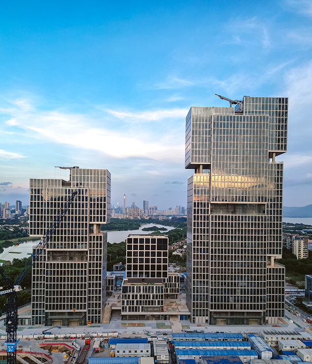 建筑高度:A塔156m(32層),B塔107m(21層) 幕墻面積:7.2萬m2 項(xiàng)目設(shè)計:德國gmp建筑事務(wù)所 幕墻類型:4米*10米超大單元式玻璃幕墻、框架幕墻系統(tǒng)等